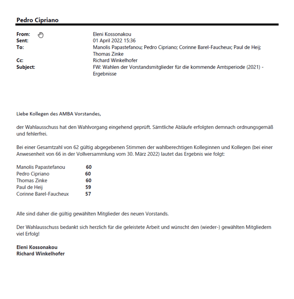 - Ms. Dorothea Prietzel-Funk and Mr. Christof Schmidt presented themselves as candidates for Auditors in 2022. They were elected unanimously.